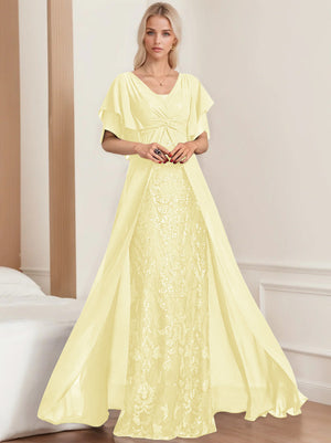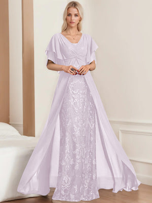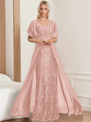 Sheath/Column V-Neck Short Sleeves Floor-Length Mother of the Bride Dresses