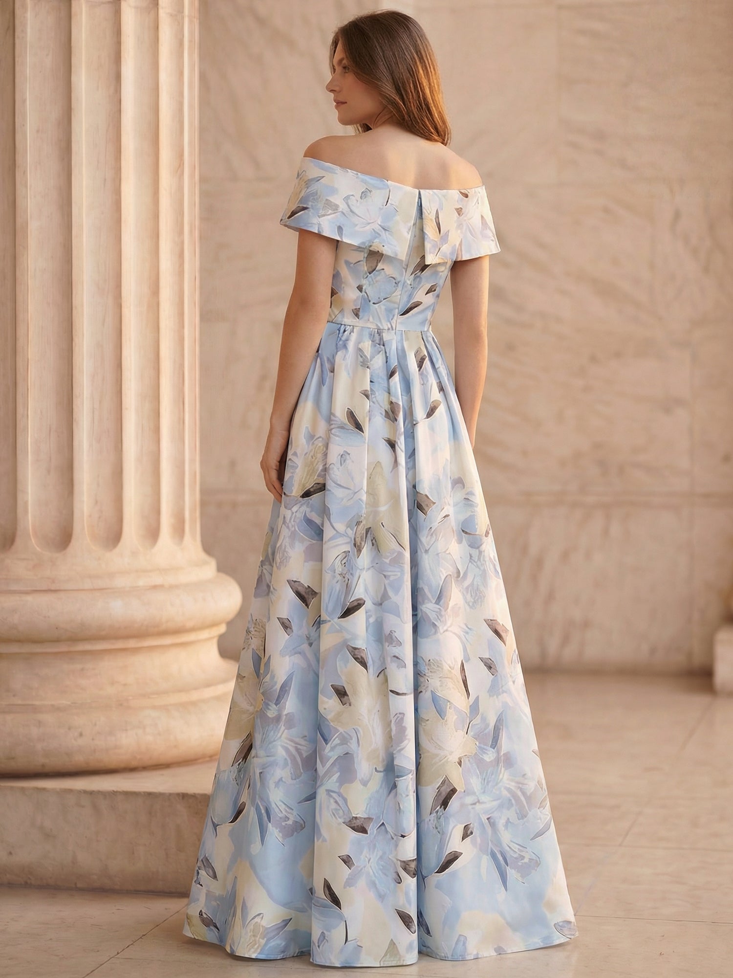 #N365703 A Line/Princesses Evening Dress Elegant Floral Sleevelss Evening Dress Off The Shoulder Floor-Length Formal Dress