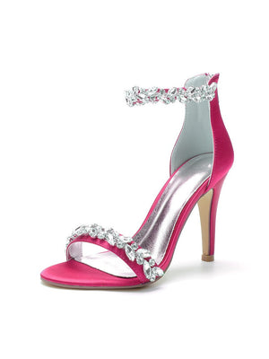 Women's Wedding Shoes Satin Stiletto Pointed Toe Crystal Bridal Shoes