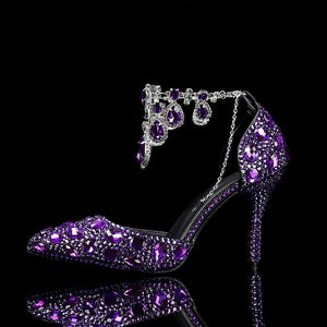 Women's Wedding Shoes Pointed Toe High Heel Sparkling Bridal Shoes with Delicate Rhinestone