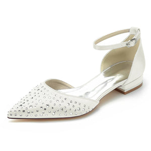 Women's Wedding Shoes Rhinestone Sparkling Shoes Flat Heel Pointed Toe Bridal Shoes