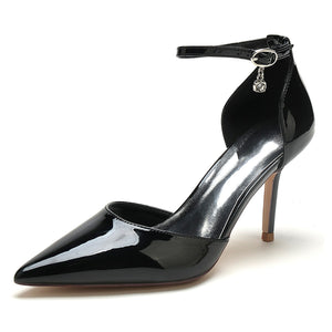 Women's Wedding Shoes Patent Leather Stiletto Pointed Toe Buckle Bridal Shoes