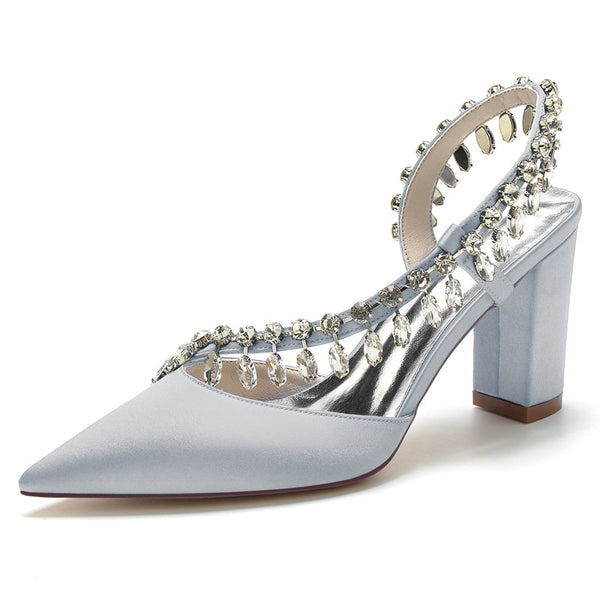 #NS1241293 Women's Wedding Shoes Closed Toe Block Heel Exquisite Bridal Shoes with Curved Rhinestone