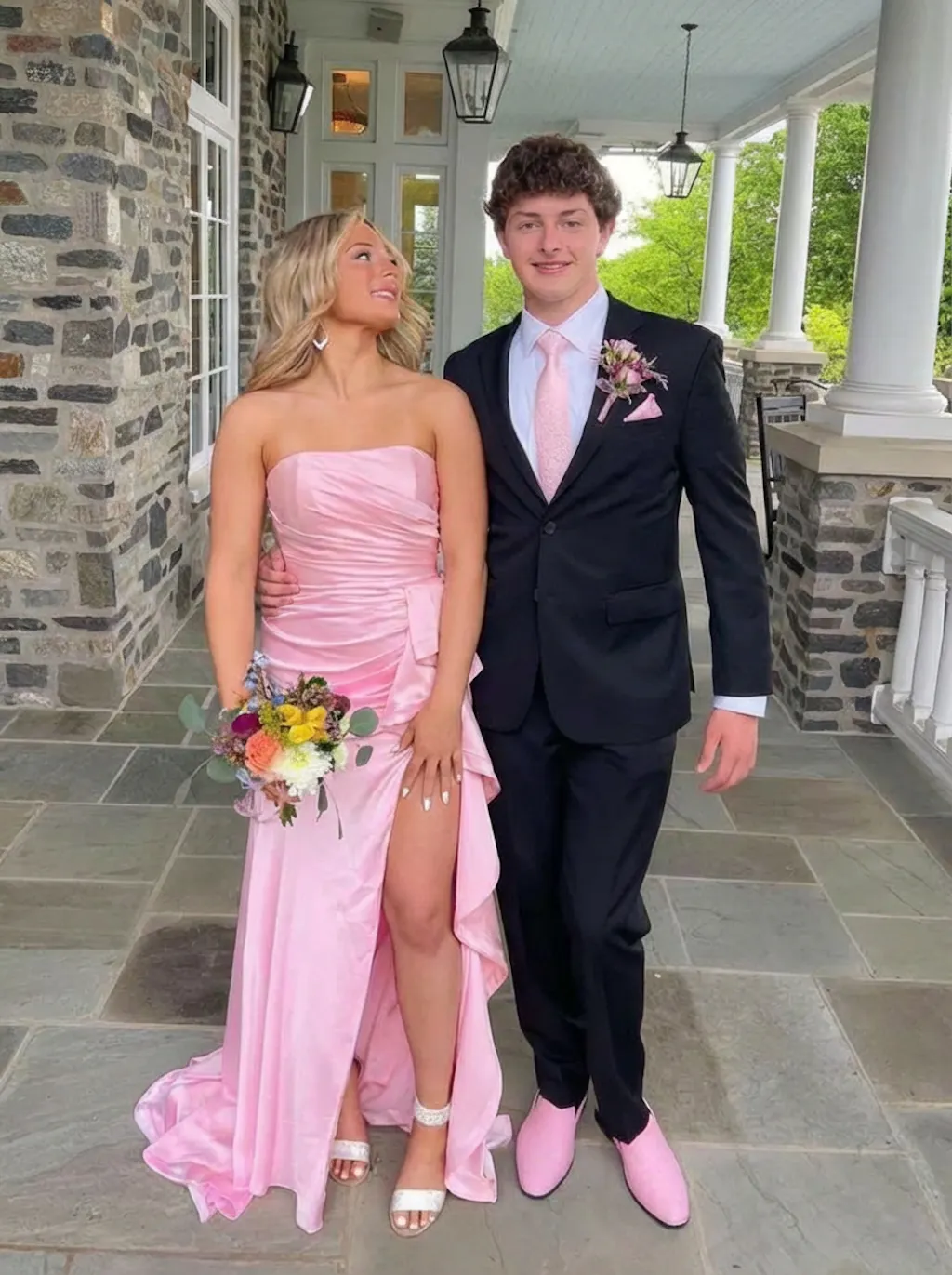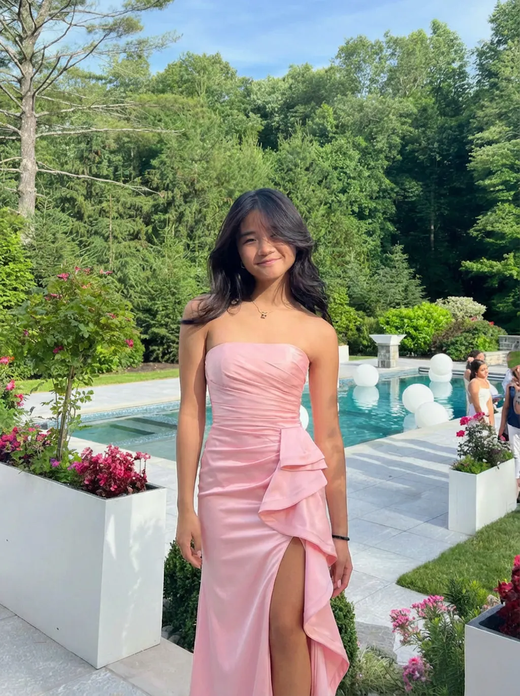 #N451702 Mermaid Prom Dresses Off The Shoulder Strapless Satin Formal Dress With Ruffle Side Split