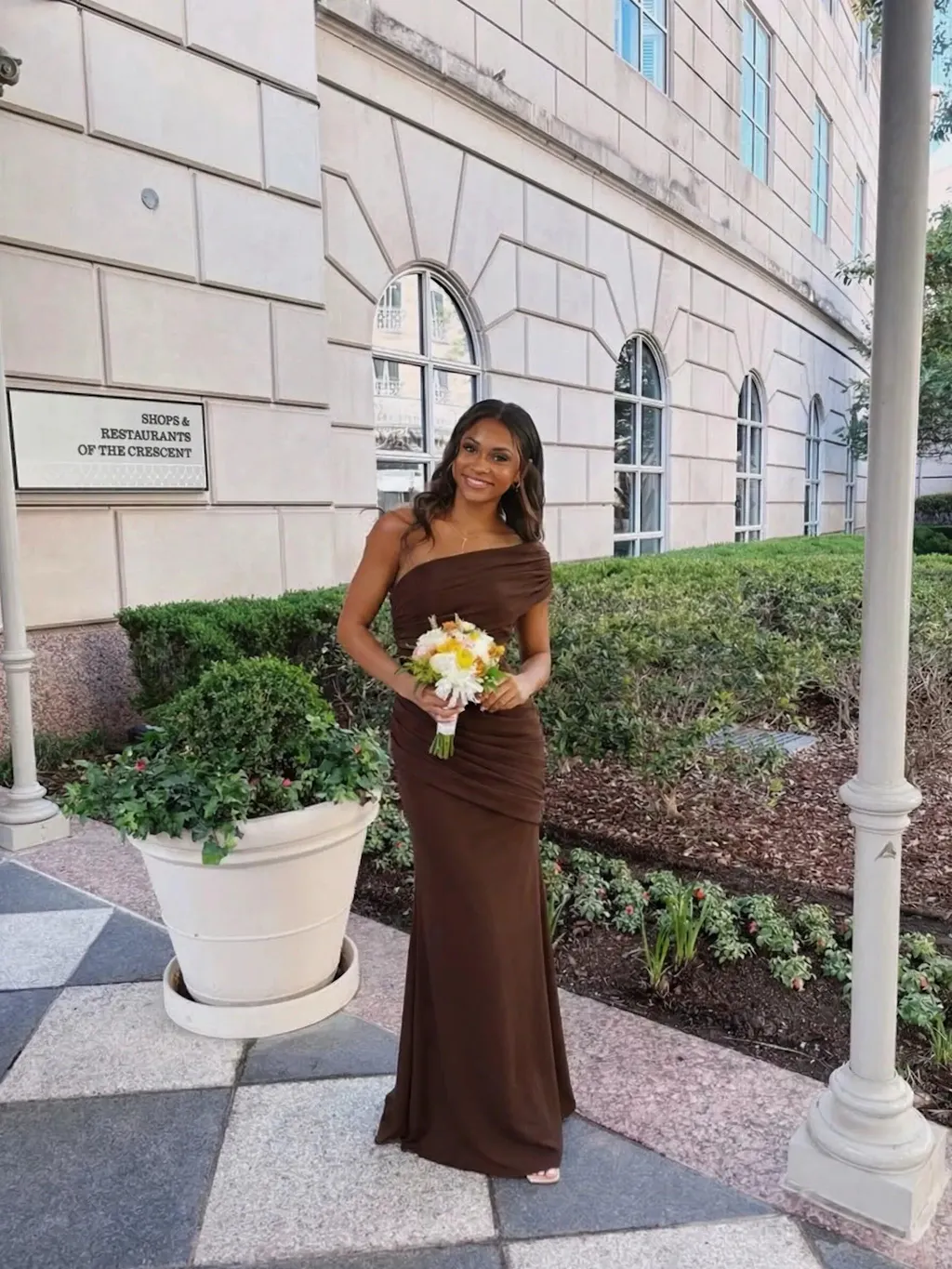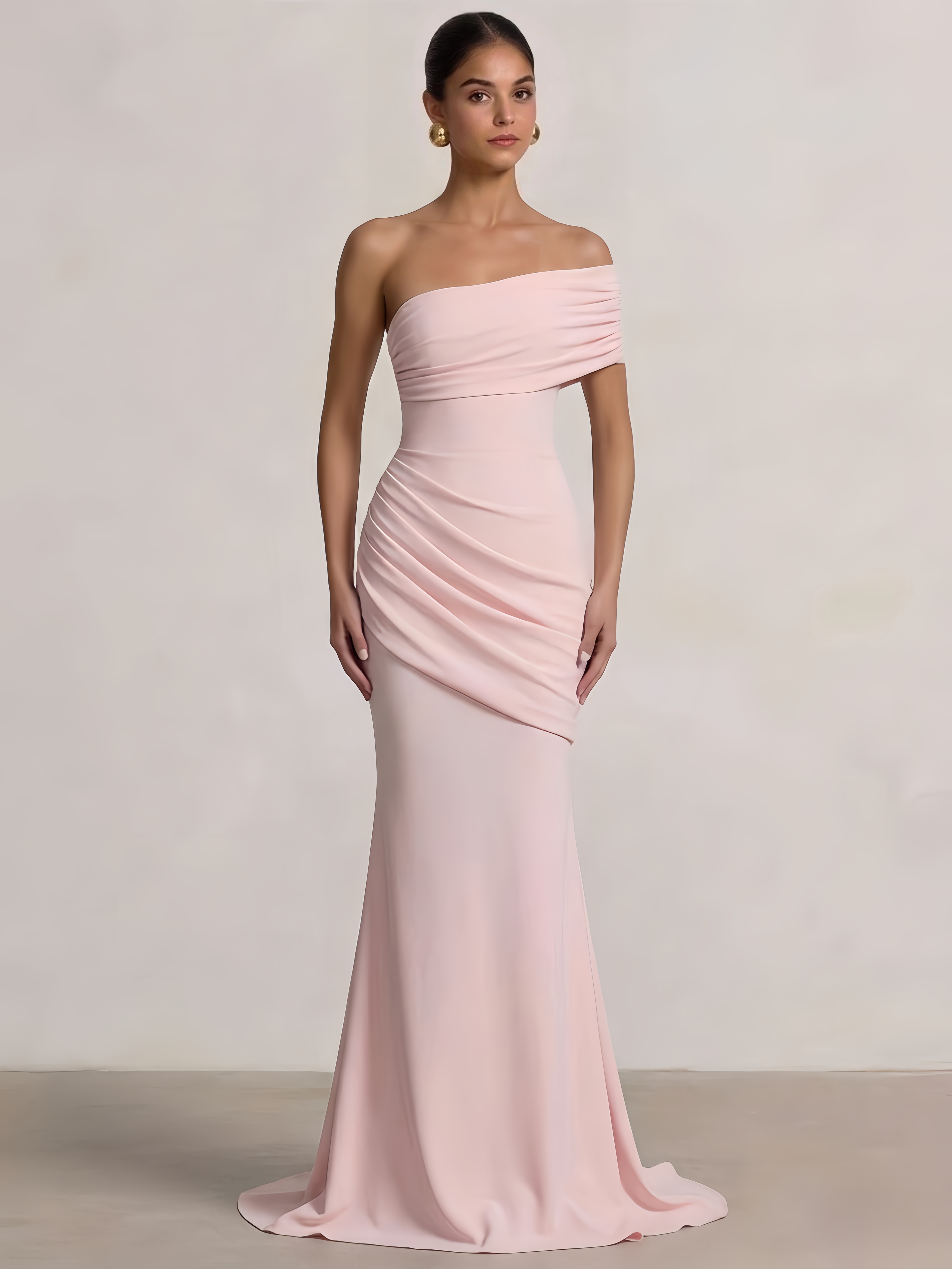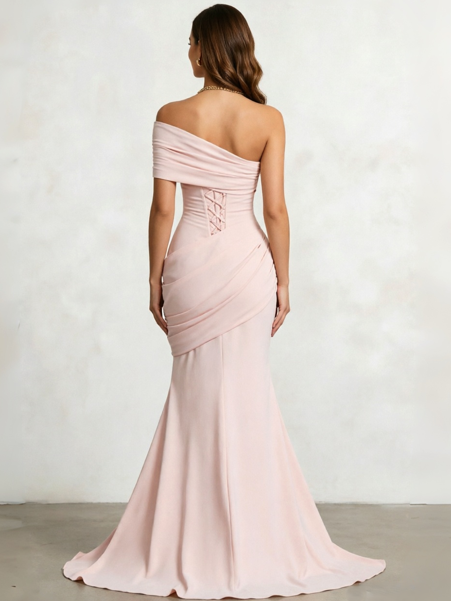 #N460203 Mermaid Prom Dresses One Shoulder One Short Sleeve Floor-length Formal Dress With Asymmetric Draped Panel