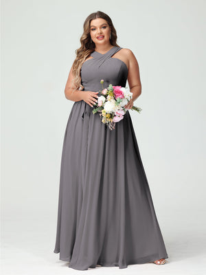 A-Line/Princess Criss Cross Neck Sleeveless Floor-Length Plus Size Bridesmaid Dress
