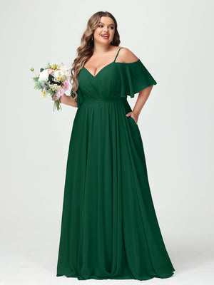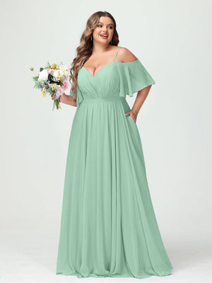 A-Line/Princess/Princess Spaghetti Straps Half Sleeves Chiffon Plus Size Bridesmaid Dresses with Pockets