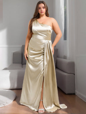 A-Line/Princess One-Shoulder Split Side Plus Size Bridesmaid Dresses