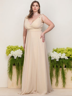 A-Line/Princess V-Neck Sleeveless Floor-Length Plus Size Bridesmaid Dresses with Bowknot