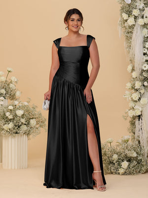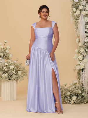A Line/Princess Cowl Sleeveless Floor-Length Stretch Satin Plus Size Bridesmaid Dresses
