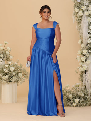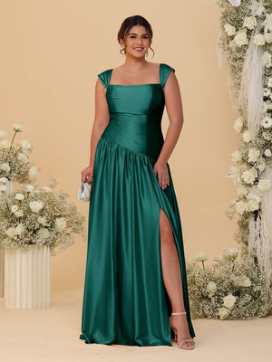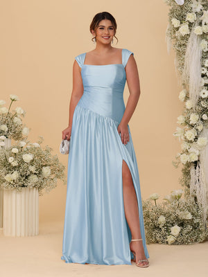 A-Line/Princess Spaghetti Straps Sleeveless Floor-Length Plus Size Long Bridesmaid Dresses with Split Side