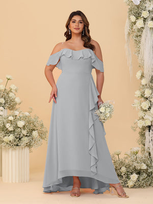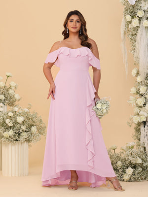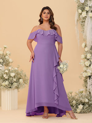 A-Line/Princess Off-the-Shoulder Plus Size Bridesmaid Dresses with Ruffles