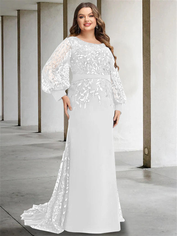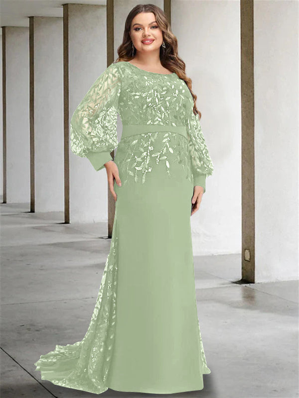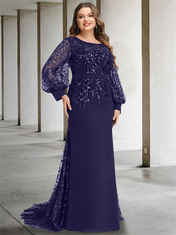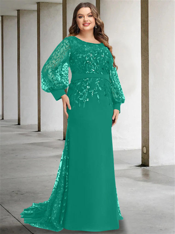 #N341883P Mermaid/Trumpet Scoop Neck Long Sleeves Floor-Length Plus Size Mother of the Bride Dresses with Sequins