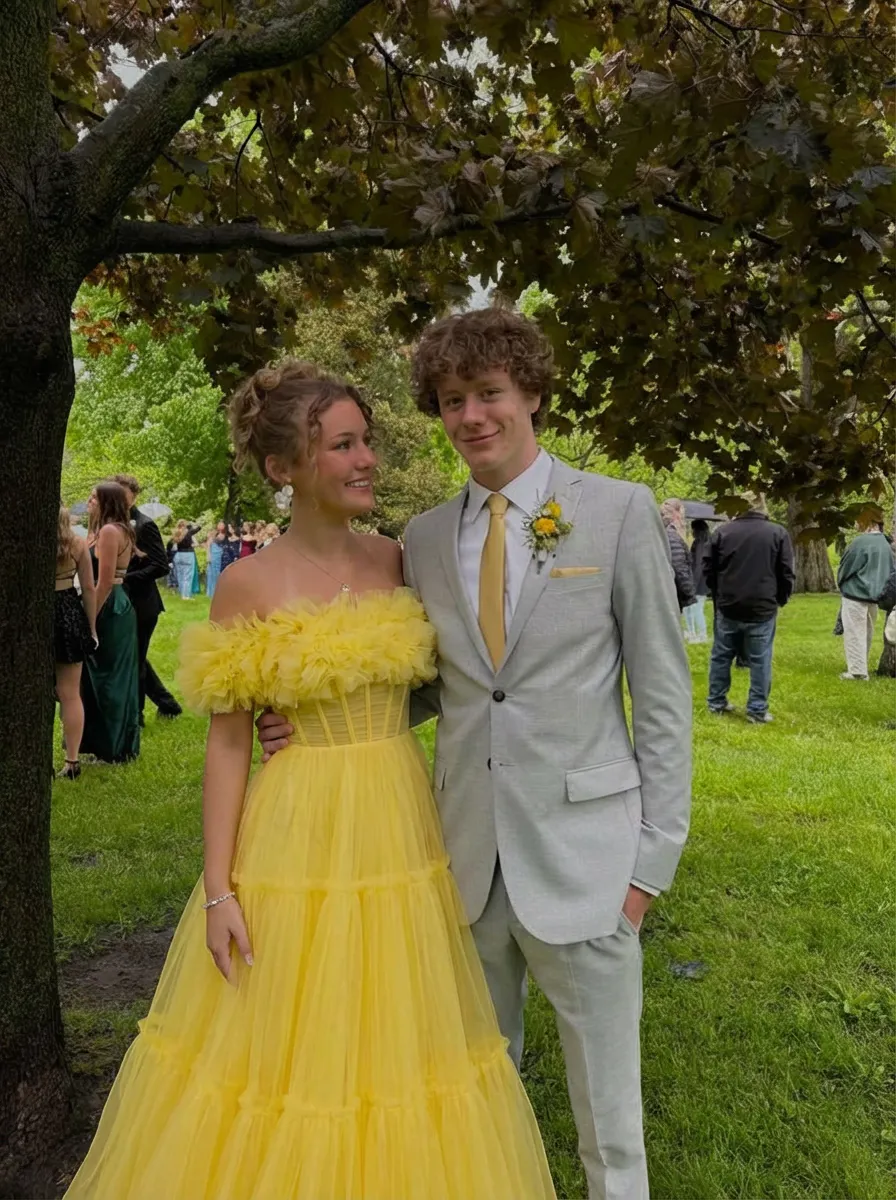#N341461 A-Line/Princess Off-the-Shoulder Long Tulle Prom Evening Party Dresses with Ruffles