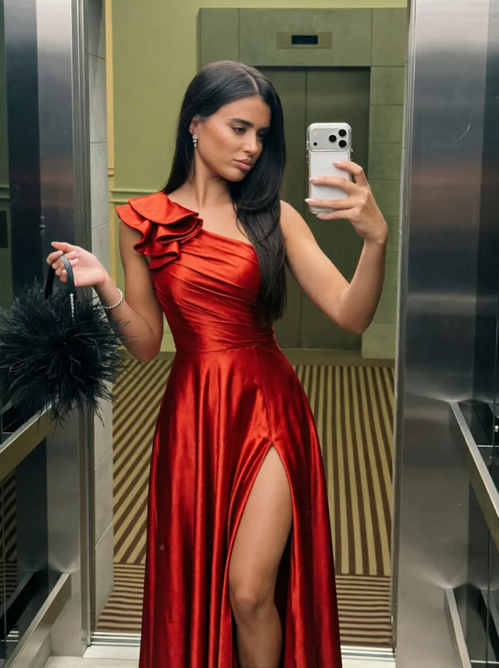 #N342312 A-Line/Princess One-Shoulder Sleeveless Floor-Length Prom Evening Dresses with Ruffles