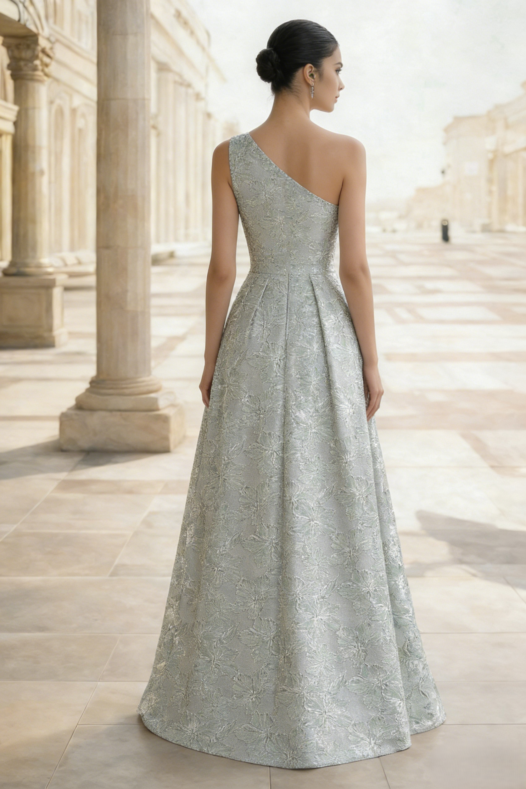 #N356701 A-Line Evening Gown Elegant Floral Jacquard Dress Prom Floor Length Sleeveless One Shoulder with Slit Pocket Sage Wedding Guest Dress