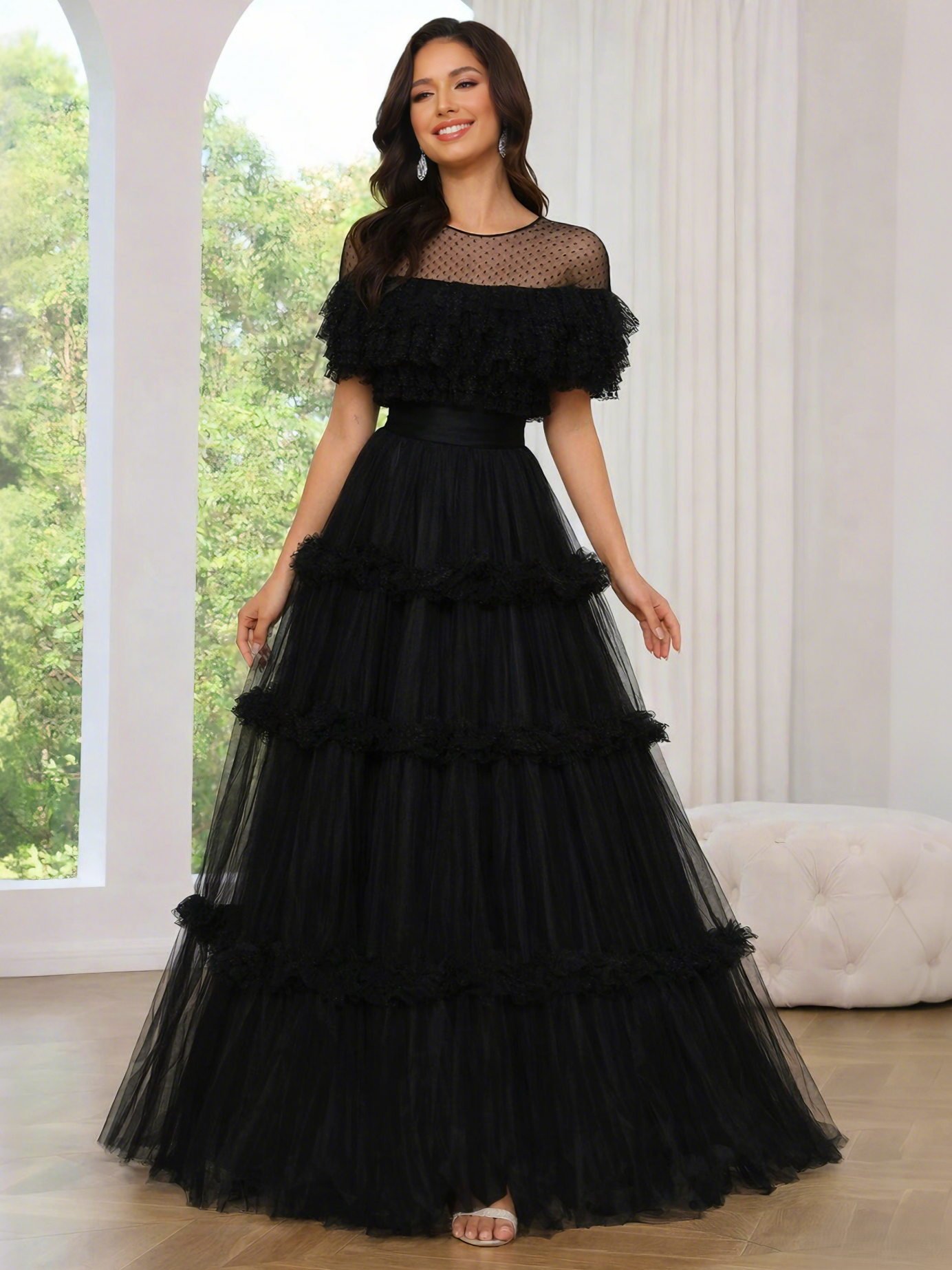 #N341164 A-Line/Princess Sheer Neck Long Dresses