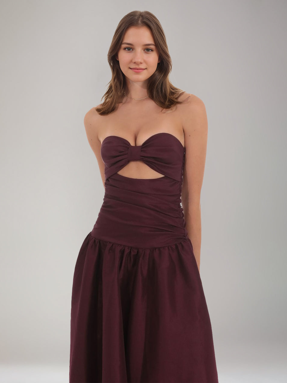 • A-Line/Princess Strapless Sleeveless Floor-Length Ruffles &Ruched Prom Dresses