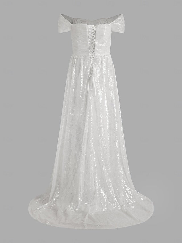 • Mermaid Evening Gown Sequin Dress Prom Sweep / Brush Train  Sleeveless Off The Shoulder Satin with Slit Masquerade Dress