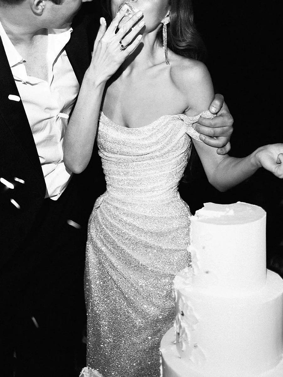 #N350609 Mermaid Evening Gown Sequin Dress Prom Sweep / Brush Train Sleeveless Off The Shoulder Satin with Slit Masquerade Dress