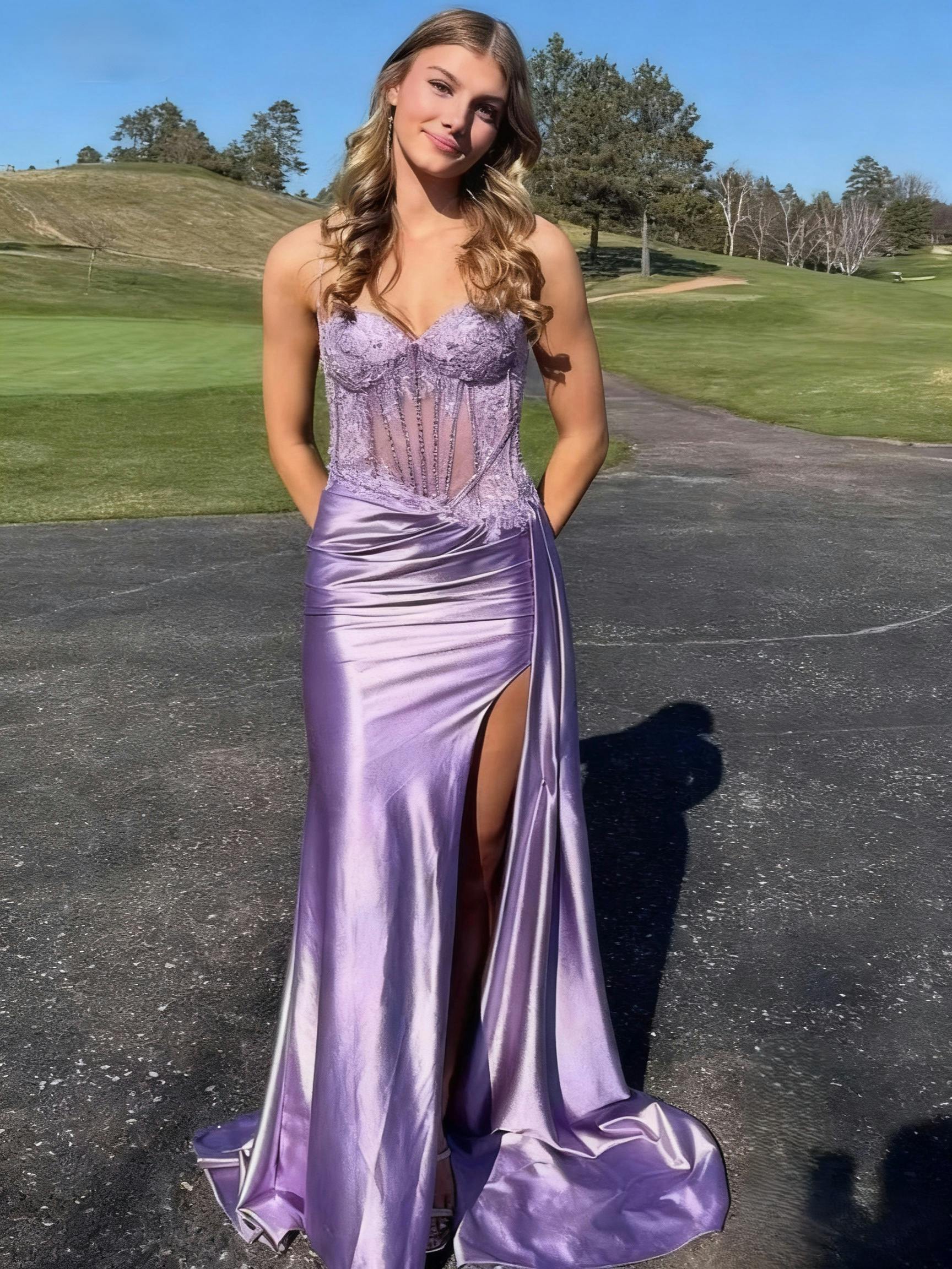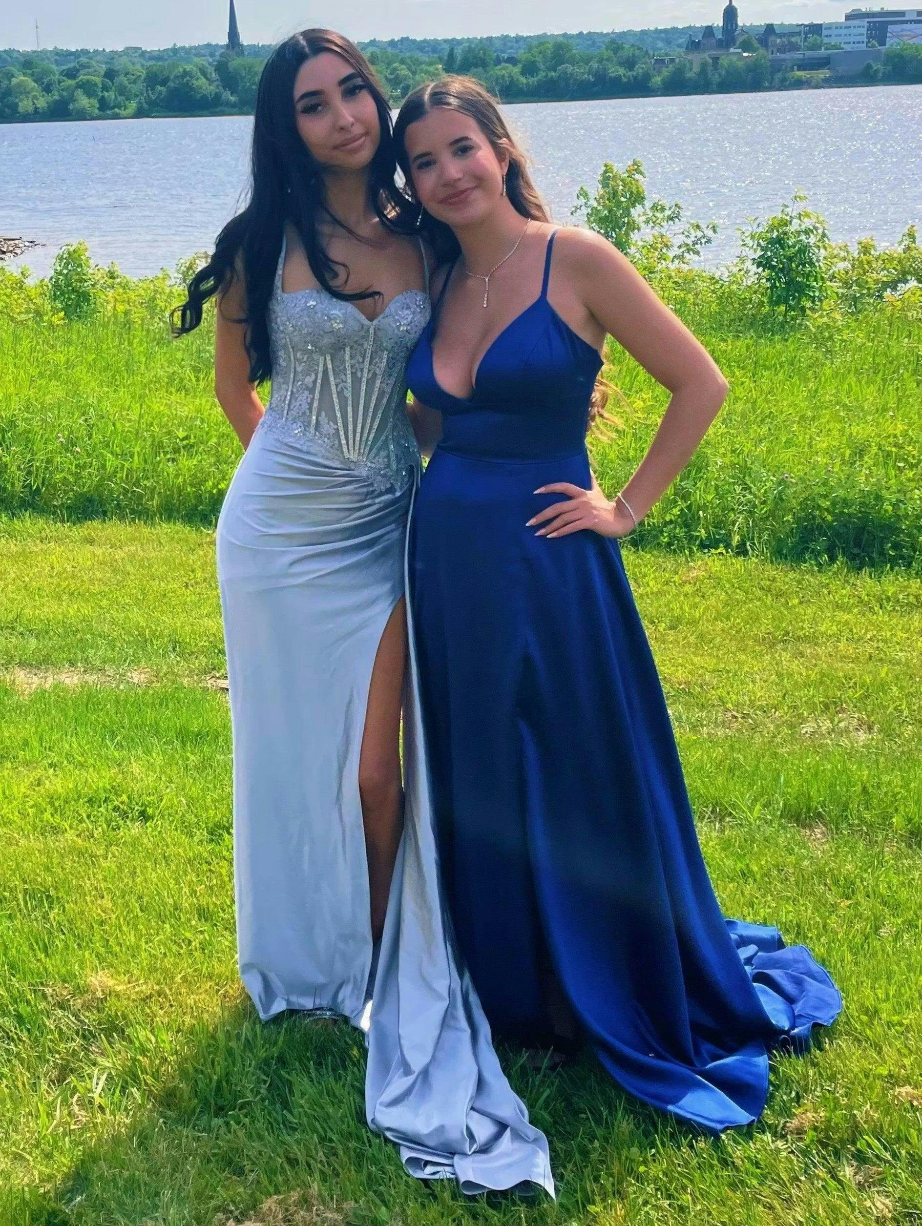 • Sheath/Column Prom Dresses Spaghetti Straps Corset Long Formal Dress Sleeveless Floor-length Sparkle Ruched