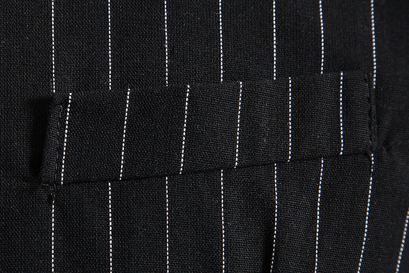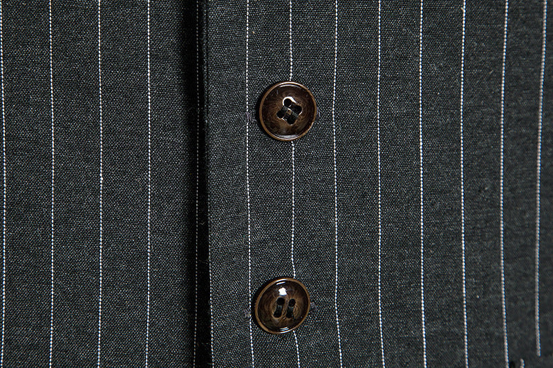 #N3121129W Black Men's Formal Striped Single Breasted Buttons Retro Vest