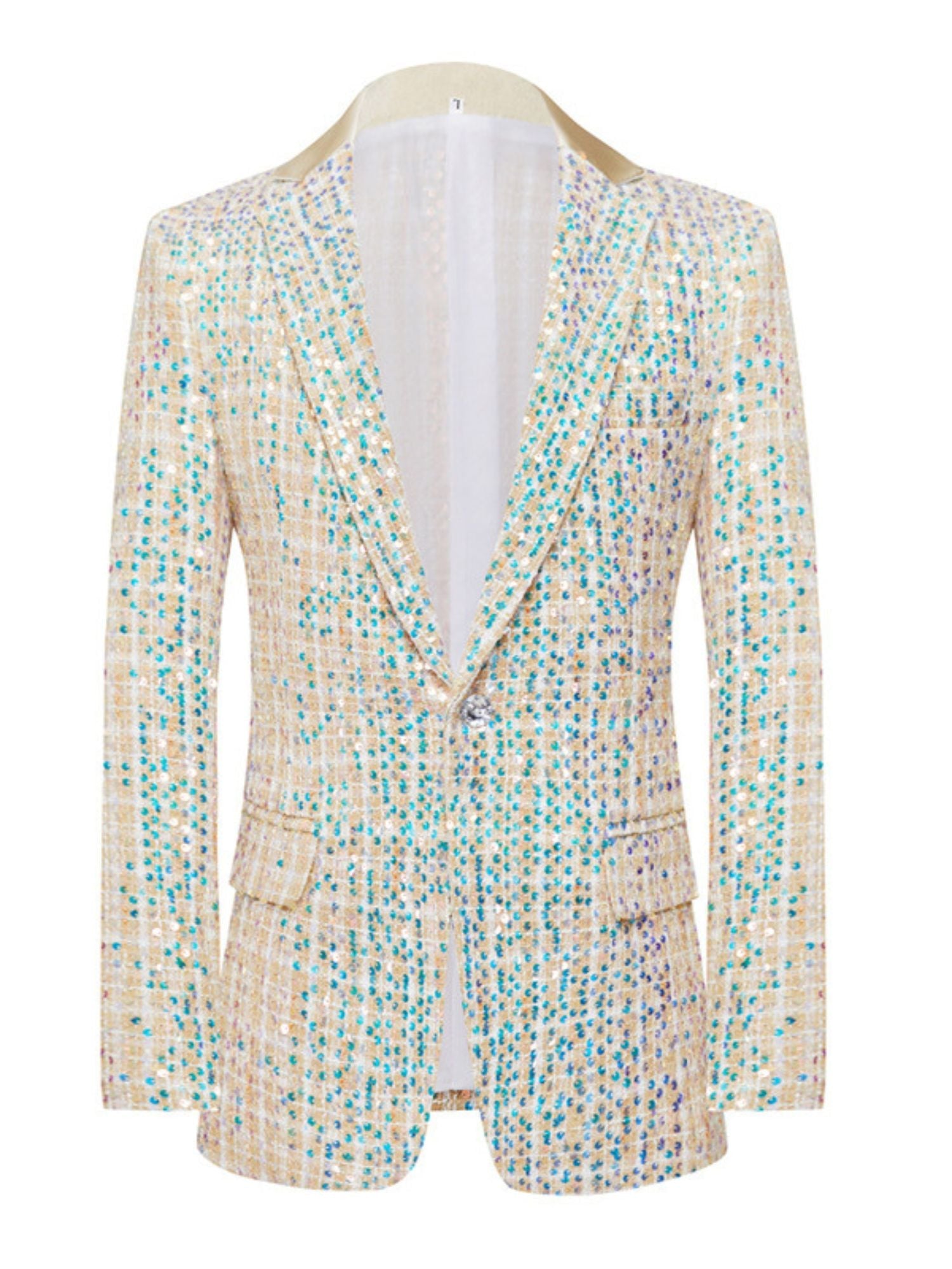#N3121012W Men's Slim Fit Champagne Sequin One Button 2 Pieces Wedding Suits