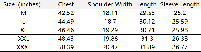Size(CM) Chest Shoulder Width Sleeve length Jacket length