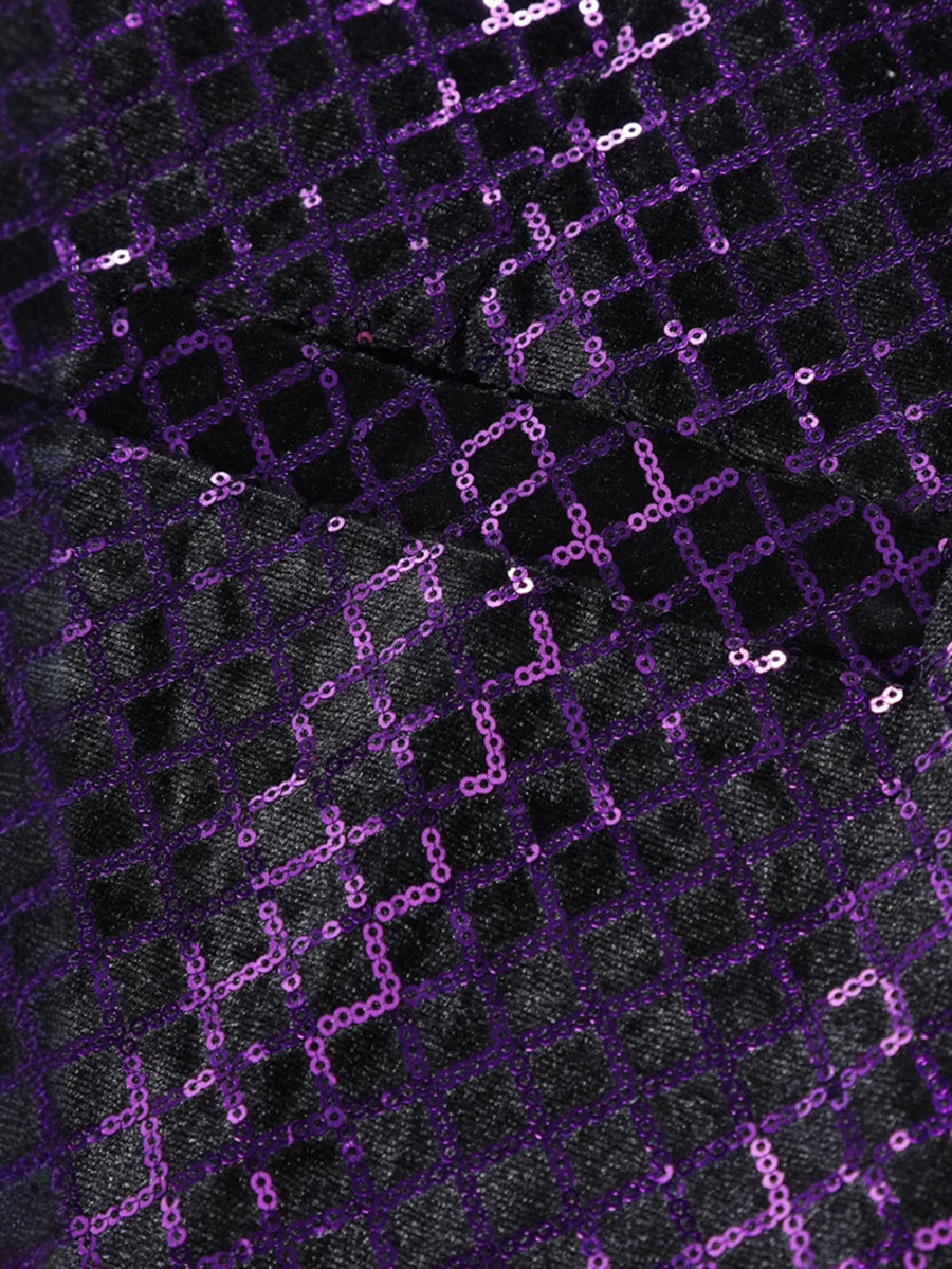 • Purple Men's Sequins V-Neck Single Breasted Buttons Sparkling Party Vest with Pocket & Belt