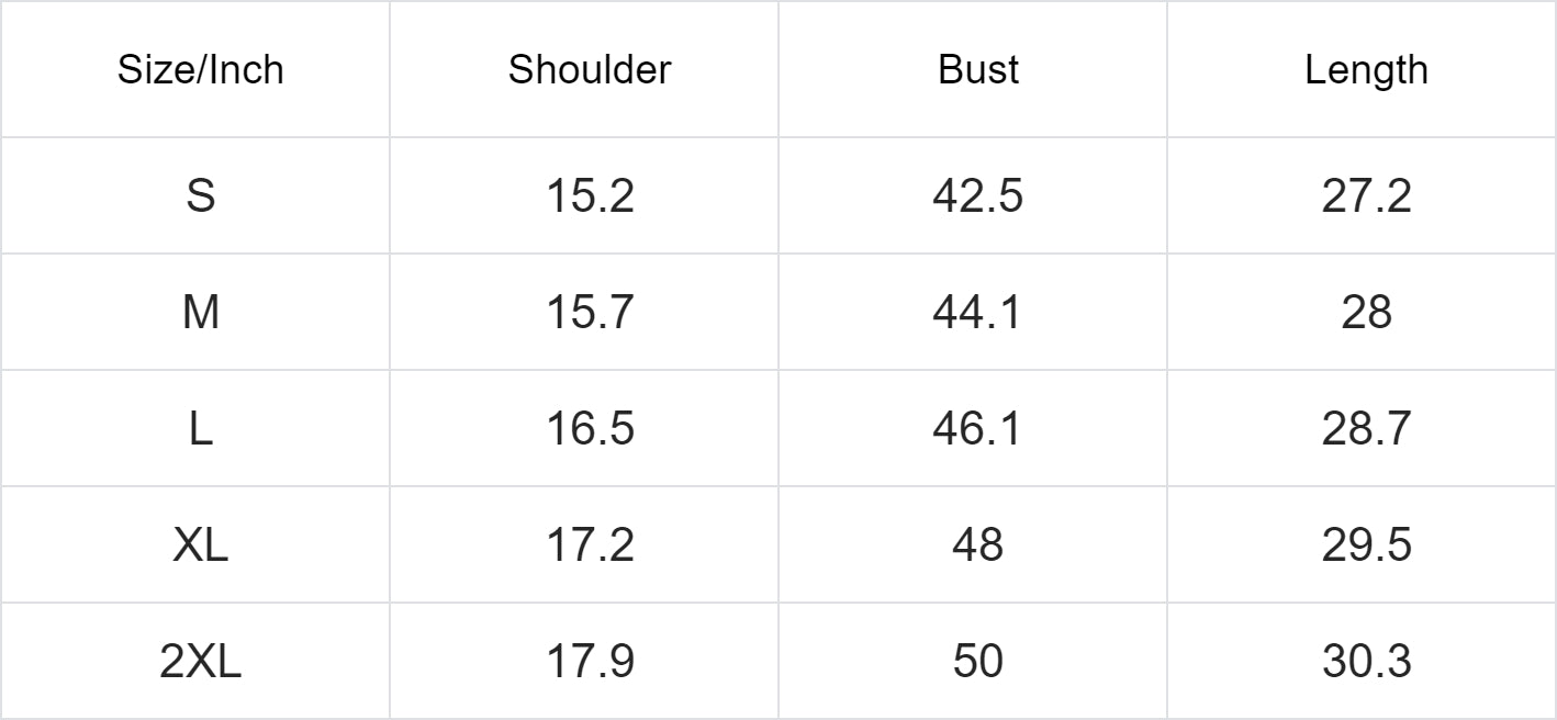Size/Inch Shoulder Bust Length