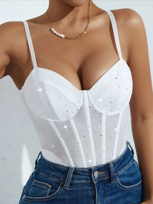 White Mesh Ruffle Cutout Corset Bra Shapewear