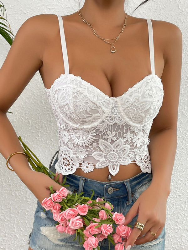 #N1141195 Women's White Sexy Elegant Lace Embroidered Bra