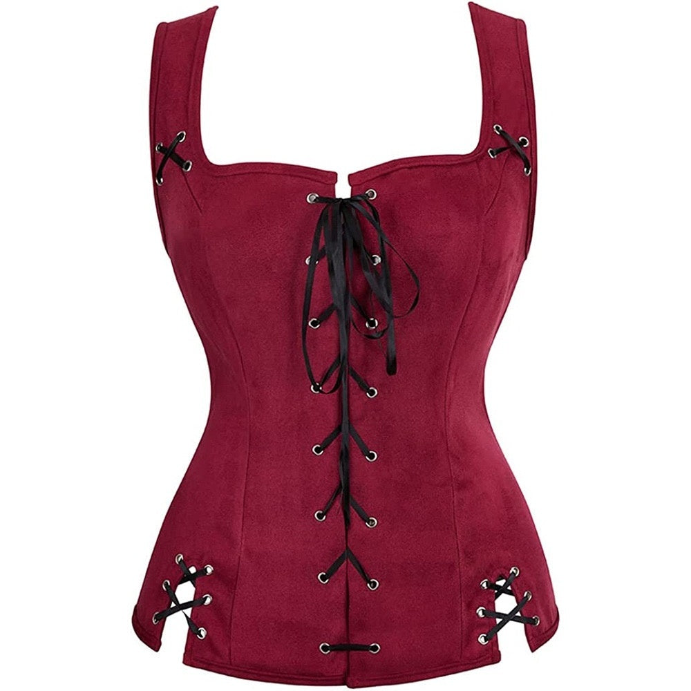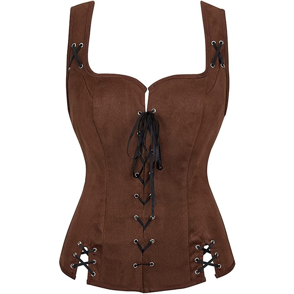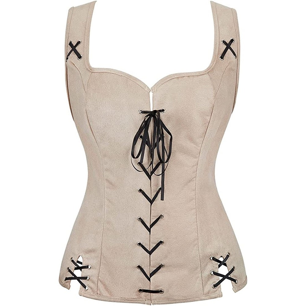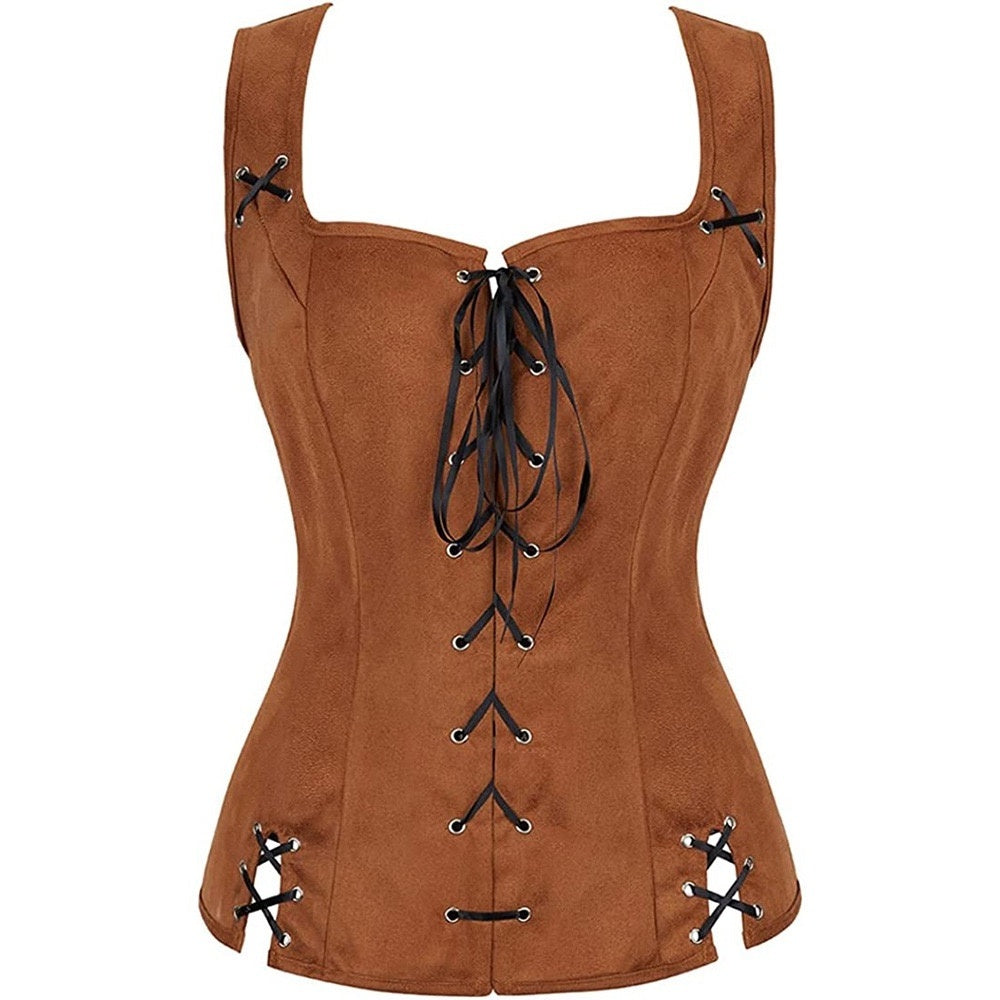 Women's Retro Vintage Medieval Renaissance Suede Pirate Viking Drawstring Solid Colored Fantasy Steampunk Halloween Carnival Masquerade Vest