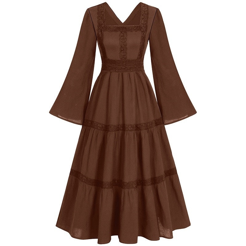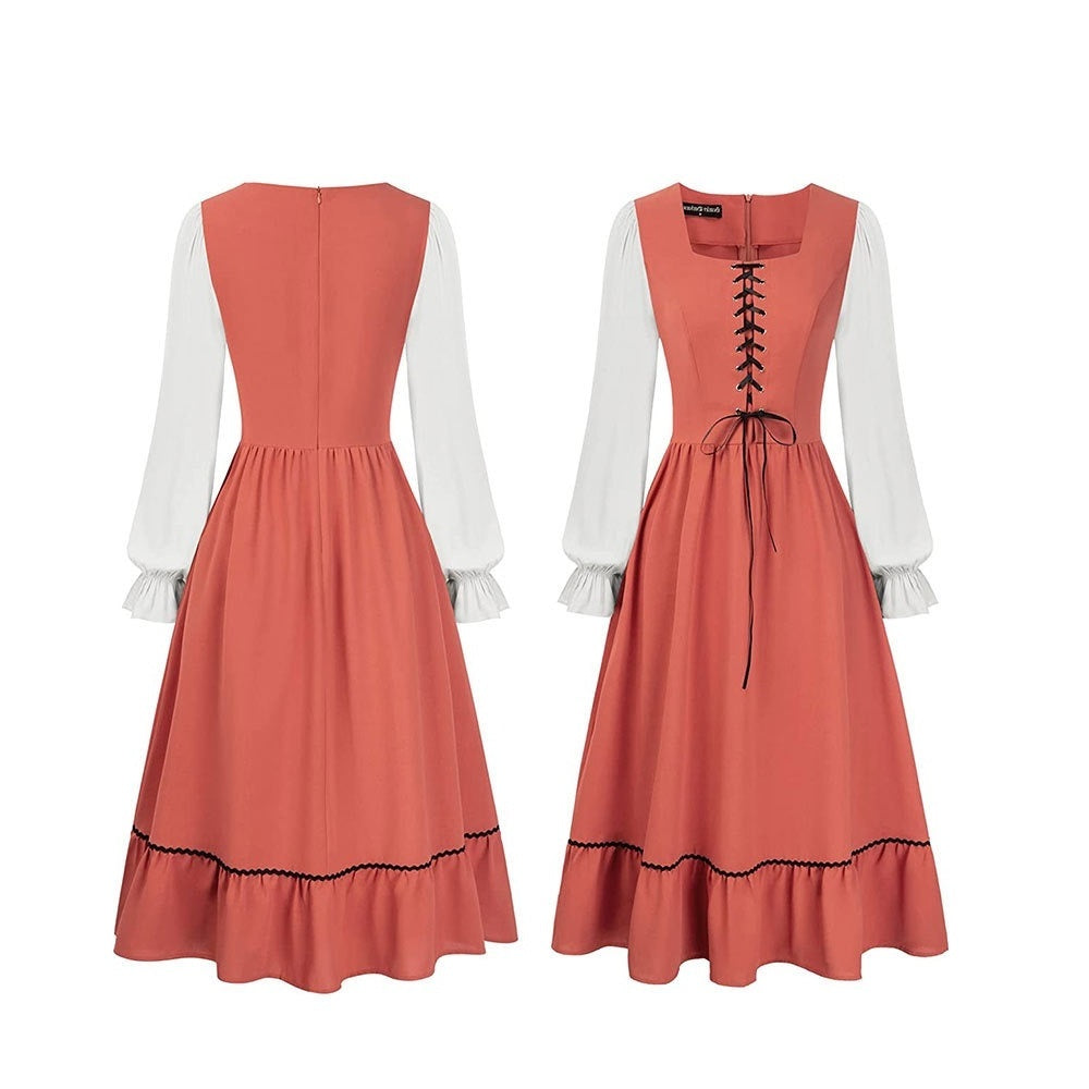 A-Line/Princess Square Neck Long Sleeves Knee-Length Retro Vintage Medieval Renaissance Pirate Masquerade Casual Dress