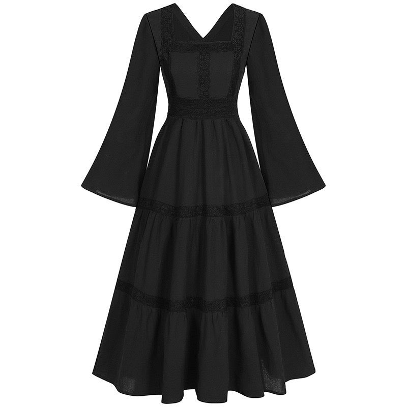 A-Line/Princess Square Neck Long Sleeves Floor-Length Retro Vintage Punk & Gothic Medieval Halloween Dress