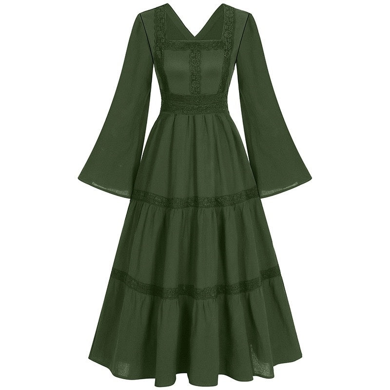 A-Line/Princess Square Neck Long Sleeves Floor-Length Medieval Renaissance Elven Cocktail Prom Dress