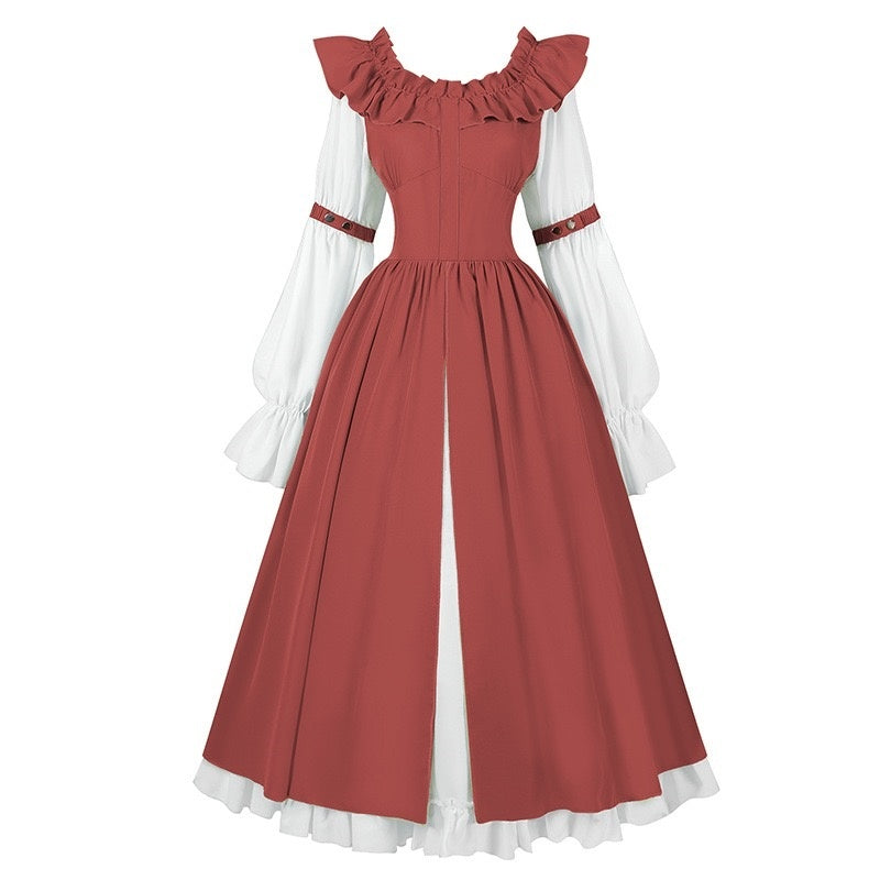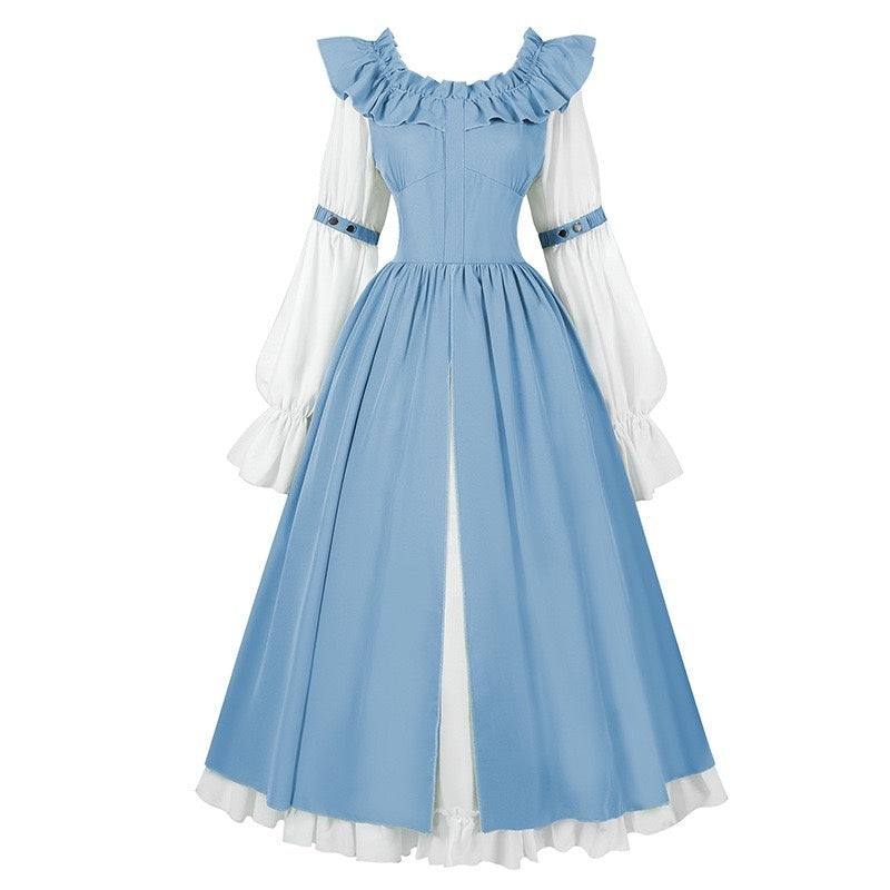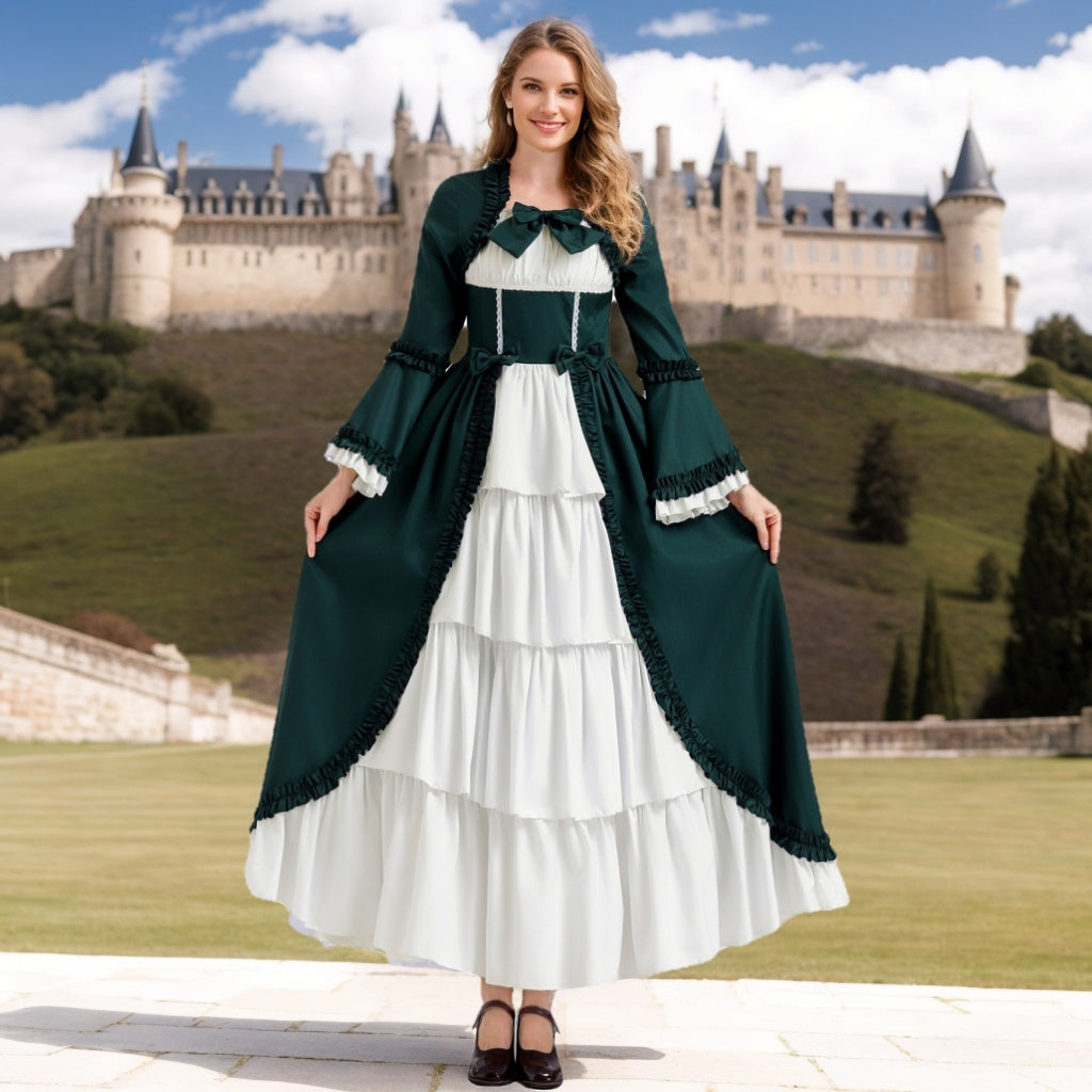 A-Line/Princess Round Neck Long Sleeves Floor-Length Ireland Medieval Vintage Cosplay Halloween Dress