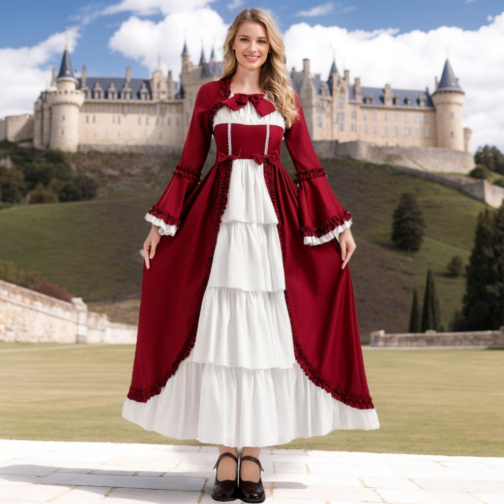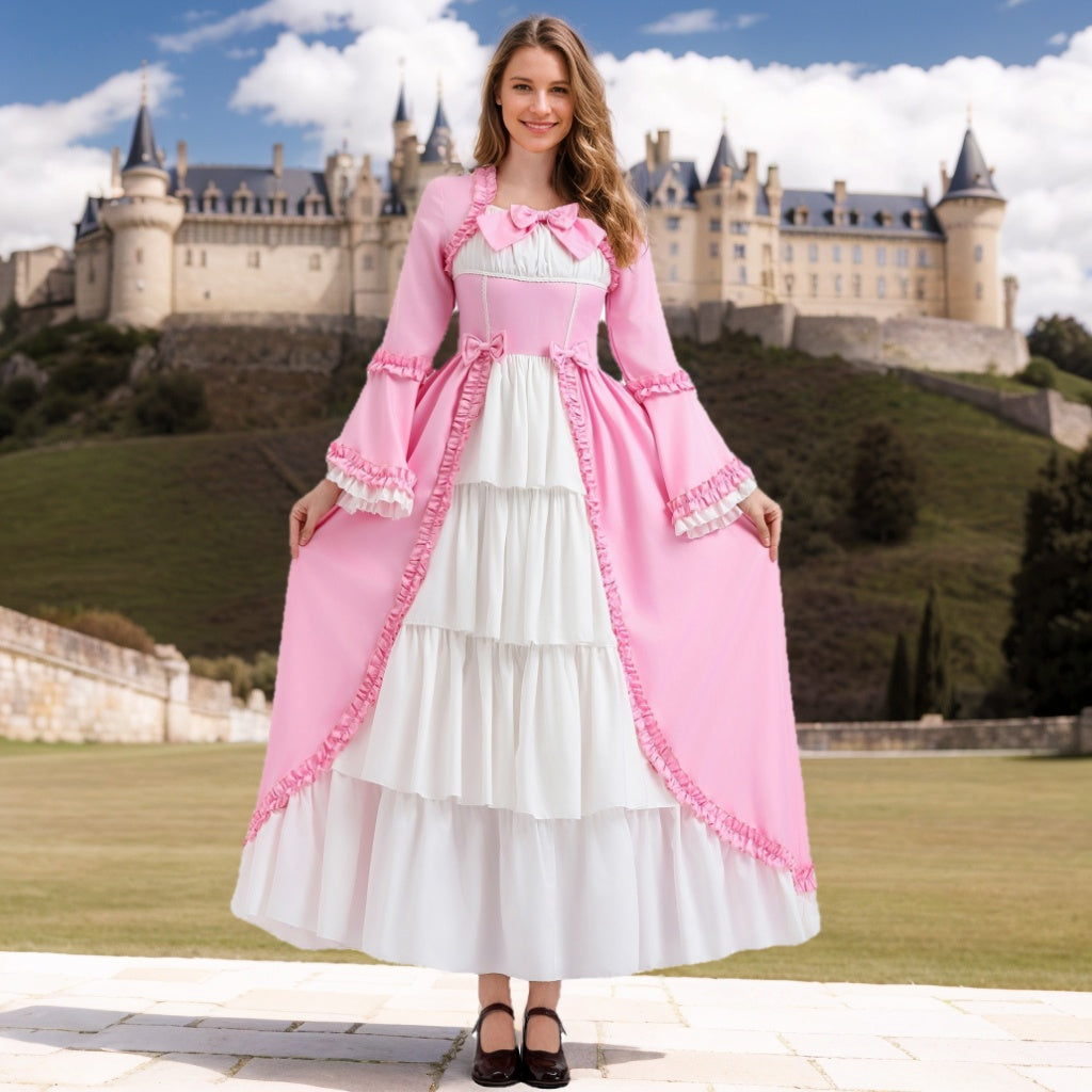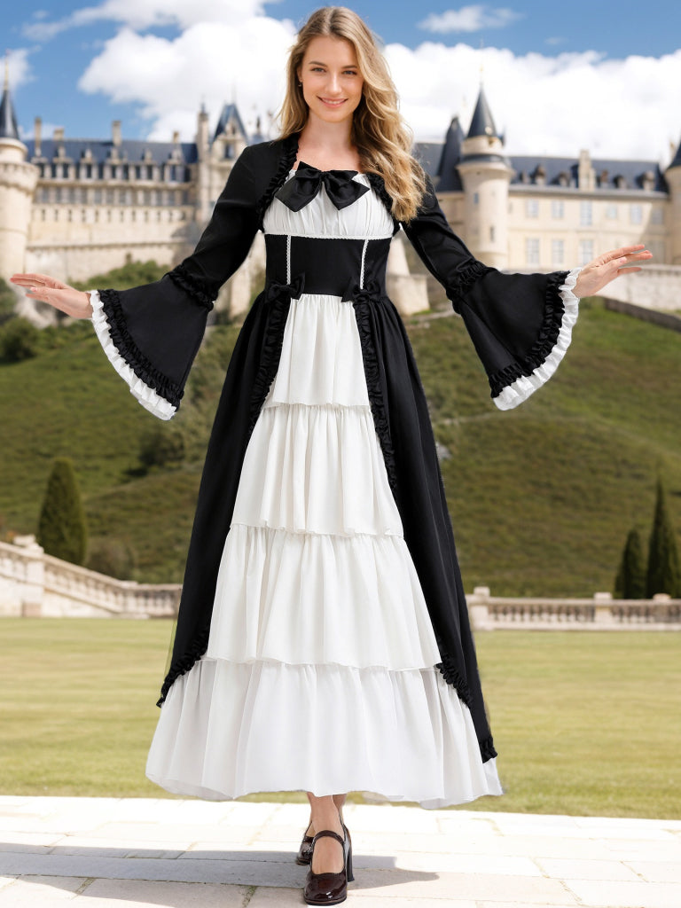 A-Line/Princess Square Neck Long Sleeves Floor-Length Medieval Palace Retro Gothic Cosplay Clothes Anime Lolita Halloween Dress
