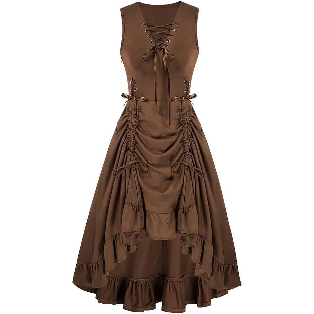 A-Line/Princess V-Neck Sleeveless Tea-Length Punk & Gothic Renaissance Steampunk Dress