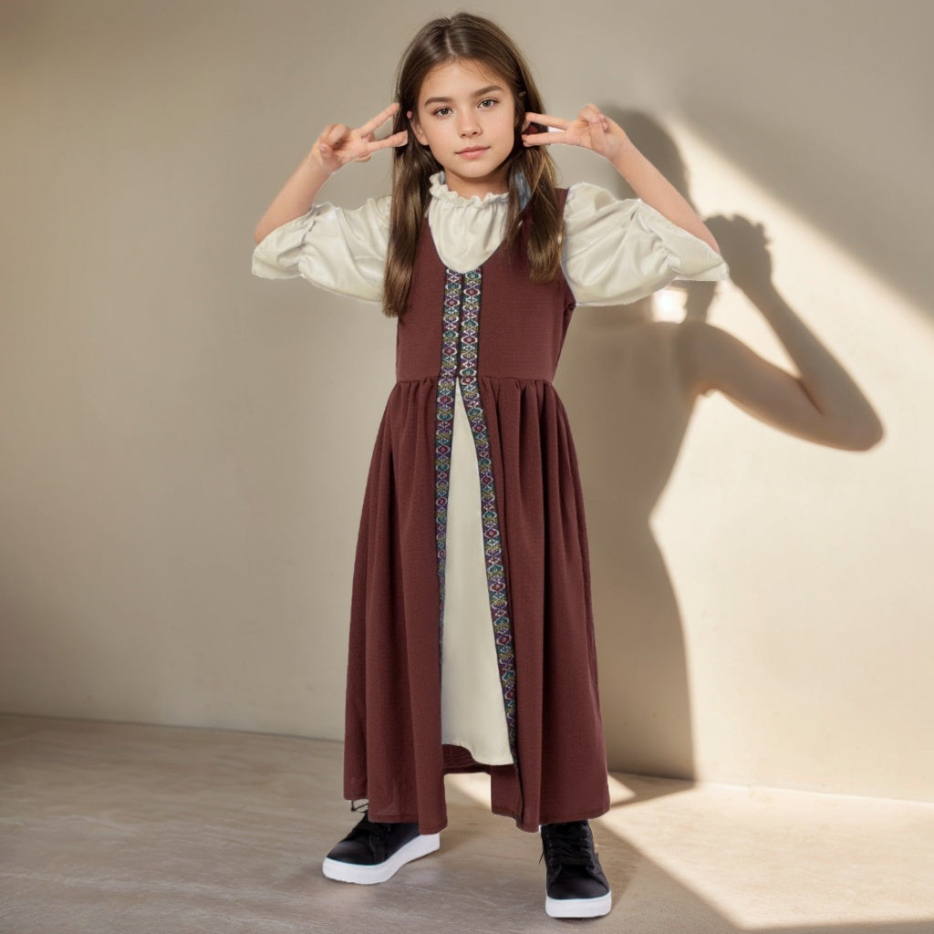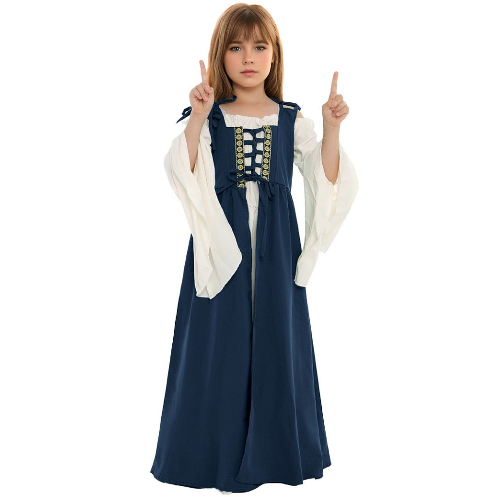 Girl's A-Line/Princess Square Neck Long Sleeves Floor-Length Medieval Renaissance Vintage Dress