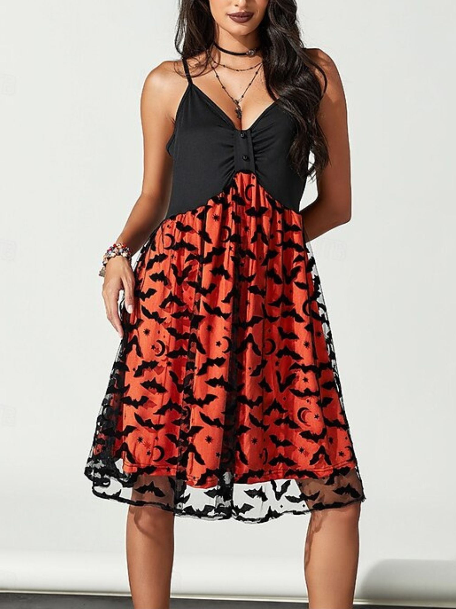 A-Line/Princess Sexy Slip Dress V-Neck Sleeveless Knee-Length Bat Halloween Performance Costumes Dress