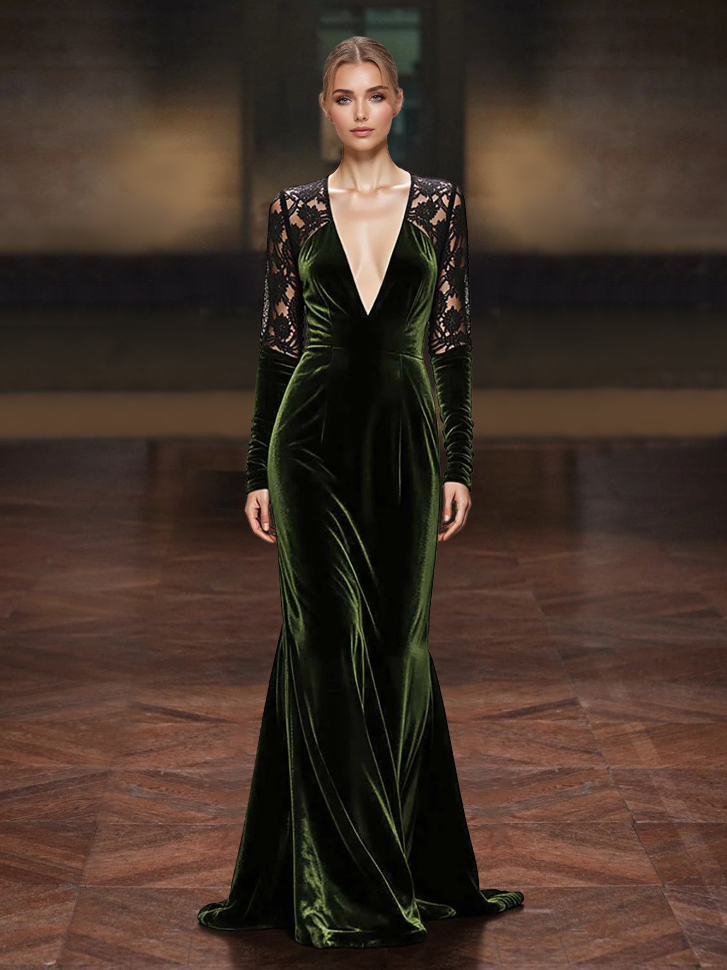 Sheath/Column Velvet Mother Of The Bride/Formal Dress Floor-Length V-Neck Lace Long Sleeves With Back Zipper6 reviews$145.99 $189.99$145.99$145.99 $189.99