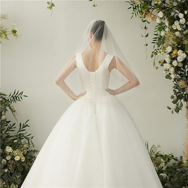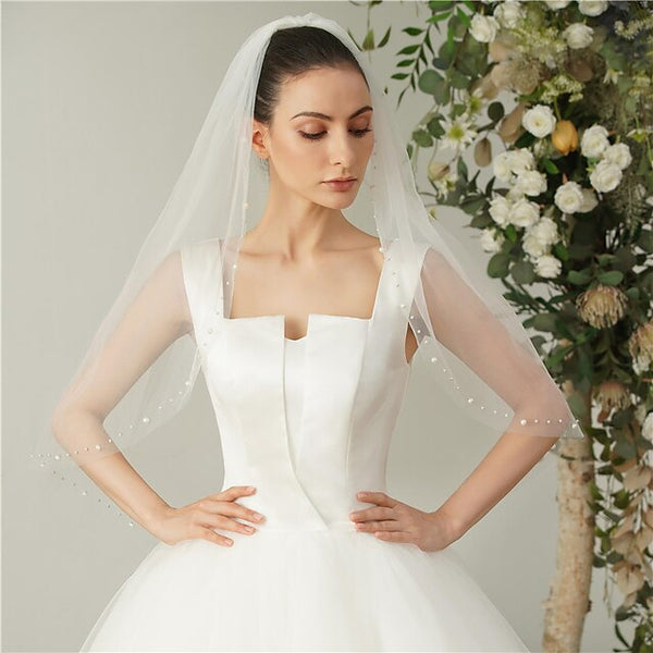 #N941143 One-tier Pearl Wedding Veils Elbow Veils with Faux Pearl