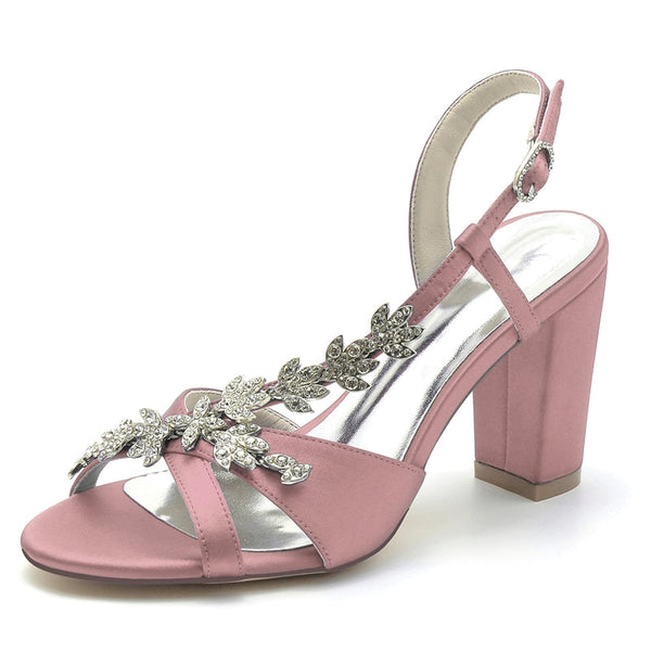 #NS1241365 Women's Wedding Shoes Opened Toe Block Heel Rhinestone Leaves Elegant Bridal Shoes