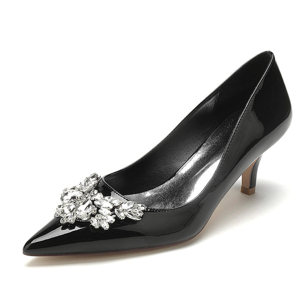 #SHU6869X1A Women's Wedding Shoes Patent Leather Rhinestone Mid Pointed Toe Bridal Shoes