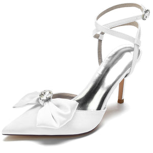 Women's Wedding Shoes Pointed Toe Bow Cross Buckle Bridal Shoes with Rhinestones