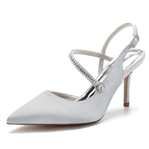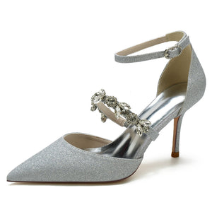 Women's Wedding Shoes Silver Pointed Toe Stiletto Heel Elegant Bridal Shoes with Rhinestone