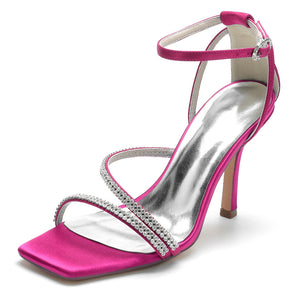 Women's Wedding Shoes High Heel Opened Toe Square Rhinestone Straps Buckle Bridal Shoes
