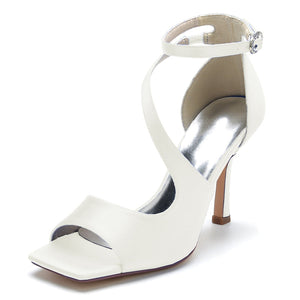 Women's Wedding Shoes Open Toe Crossed Straps Buckle Elegant Bridal Shoes