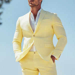 Men's Linen Blazer Fashion Casual Regular Tailored Fit Single Breasted Two-buttons Blazer Jacket